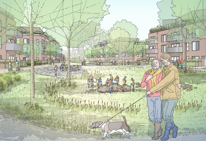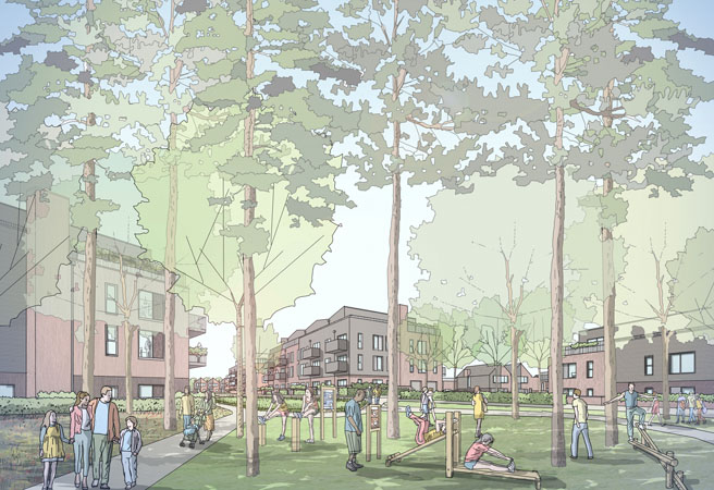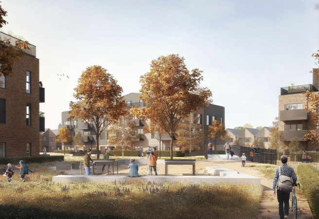 Working in close collaboration with Wokingham Borough Council, residents and the local community, the masterplan celebrates diversity and creates a proposal for affordable and social tenure-led development for the Gorse Ride Estate. The phased regeneration will take place over a number of years, transforming the estate into a place local people can be proud of.