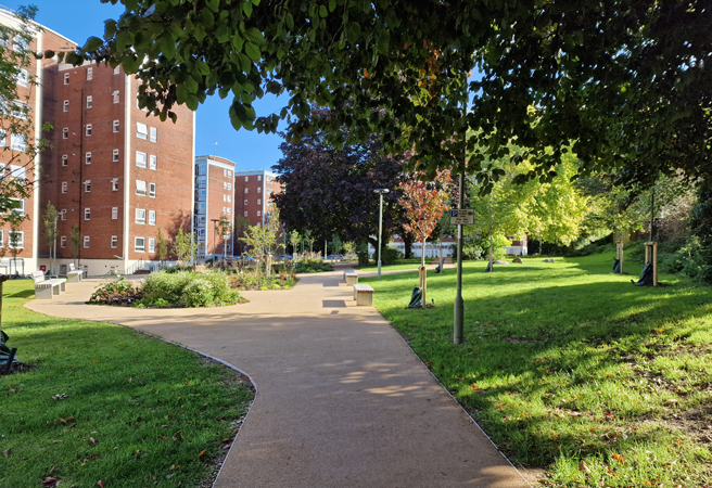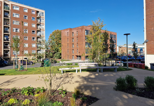 Ubu’s landscape design will improve the open spaces around the site, provide link footpaths and develop a new community garden to the south of the site.