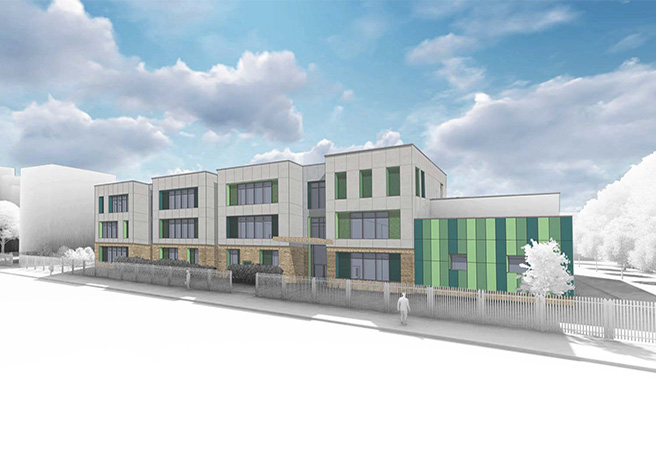 Key drivers of the proposal were to provide a well organised layout, and condense the footprint, whilst expanding the playground area. The school is now aligned with existing building frontages, infilling a gap in Studley Road street scene and engaging the surrounding environment. Architecturally the proposal took inspiration from the surrounding properties, to create a considered and formalised elevation, with a rhythm of recesses which serves to reduce the mass and weight.