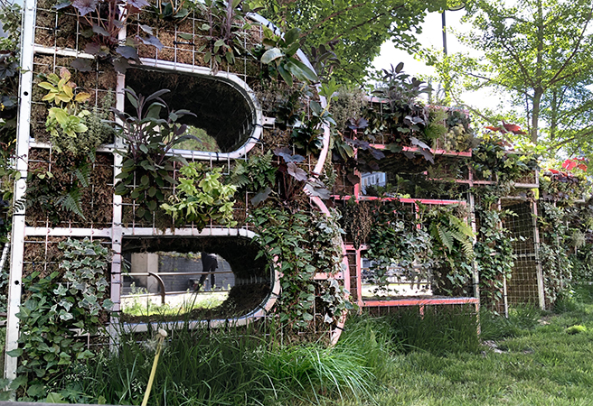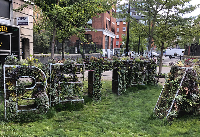 The idea of the letter was developed as part of a mini design competition which we entered in 2018 with Eight Associates and Paul Wigley, and won. The letters are constructed out of a frame with a mesh covering and then lined with moss filled with growing media and planted with a broad variety of both ornamental plans and herbs.