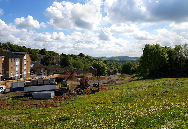 Ubu are very excited to see that our housing scheme for Winchester City Council, New Homes Delivery Team has started on site. The scheme will provide 77 new homes, with a mix of 1, 2 and 3 bedroom flats; 2 and 3 bedroom houses and a 3 bedroom bungalows, on a very steep challenging site in Stanmore, Winchester. We have designed a contemporary and robust landscape that knits the new development into the existing open parkland. In addition improvements are proposed to the footpaths across the Valley and to the remaining open space.
